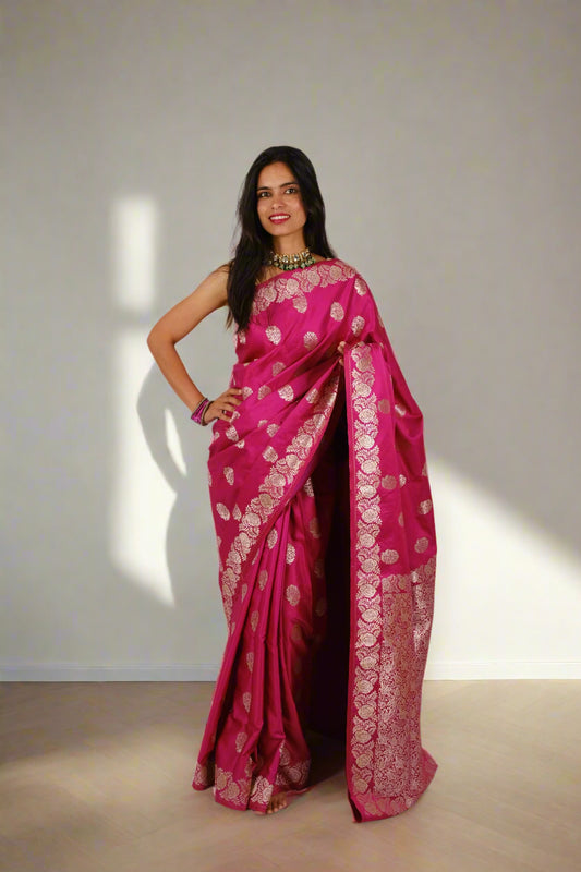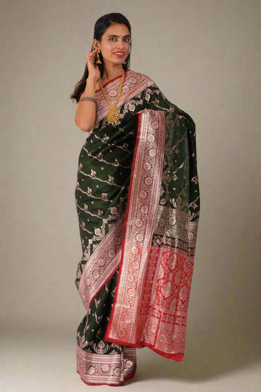Discover elegant Banarasi silk sarees crafted for timeless beauty — royal looks, affordable prices.
