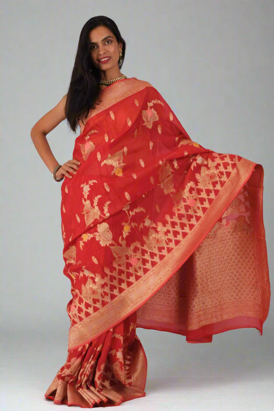 Sinduri Lal Katan Jangla - Banarasi Saree