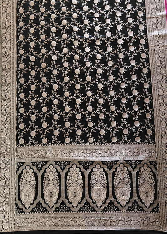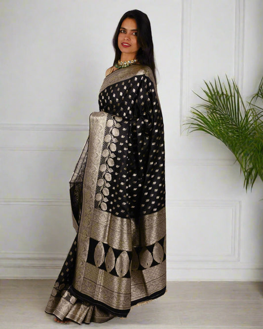 Pitch Black Katan Silk - Banarasi Saree