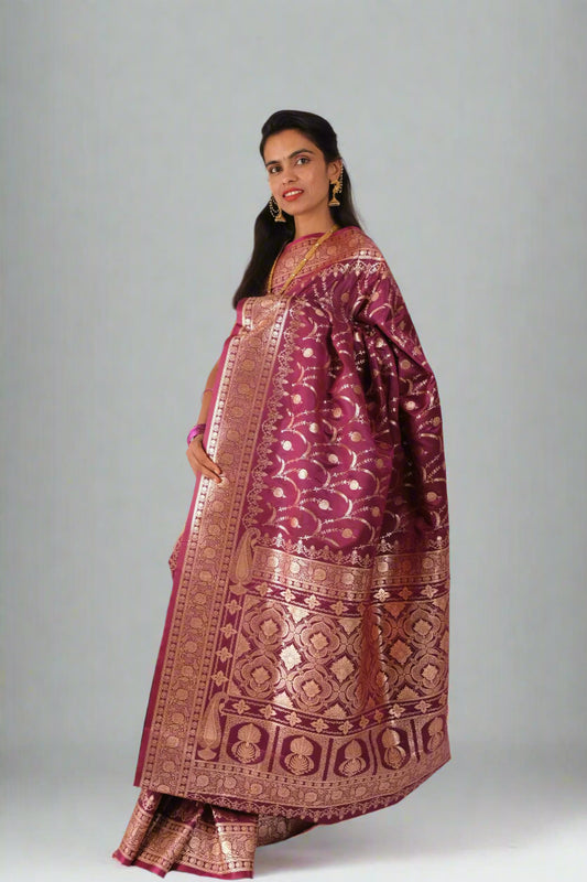 Soft sheen, easier wear—Silken Saga’s Mashru Silk Banarasi sarees blend elegance with...