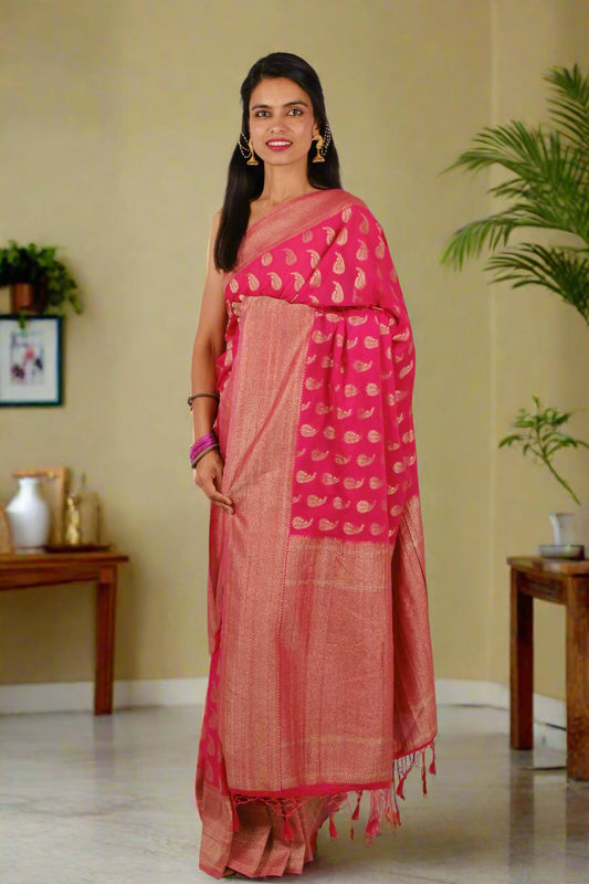 Pink Crushed Georgette Contrast - Banarasi Saree
