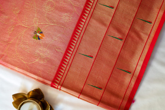 Silken Saga curates authentic Tissue Banarasi Sarees with soft shimmer, pure zari work, and timeless designs — giving you luxury that feels light and affordable.